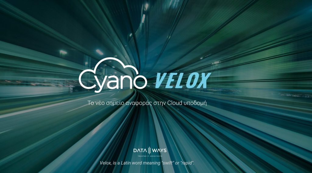 Το Cyano Velox είναι η cloud υποδομή (Infrastructure as a Service) νέας γενιάς της Dataways, σχεδιασμένη εξολοκλήρου in-house από το τμήμα R&D της εταιρίας για να προσφέρει πλήρη τεχνική ανεξαρτησία, κορυφαίες επιδόσεις και προβλεψιμότητα κόστους.